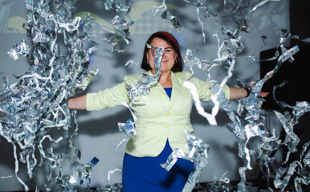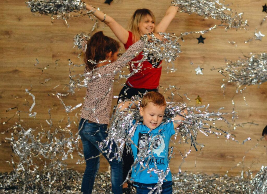 СТРІЧКА-ШОУ — це драйвова дискотека, де діти разом з двома ведучими танцюють та розважаються!Протягом перших 10-15 хвилин, за допомогою спеціальної пушки, ефектно видуваються сріблясті стрічки, наступні 30 хвилин діти обкидаються ними та танцюють разом з ведучими.