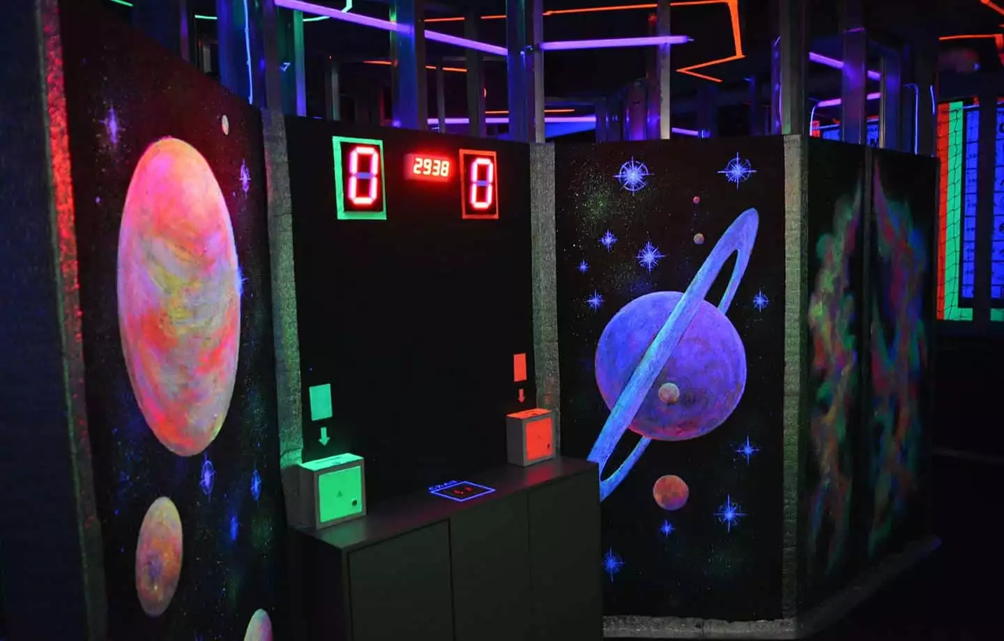 Космічний лабіринт – це яскрава ігрова локація площею 80 кв.м. з яскравими неоновими декораціями та динамічною музикою.