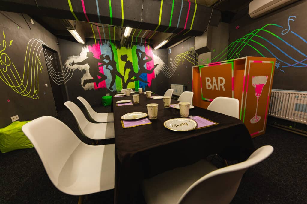 Яскравий неоновий диско зал для проведення заходів та диско програм для невеликої компанії друзів.