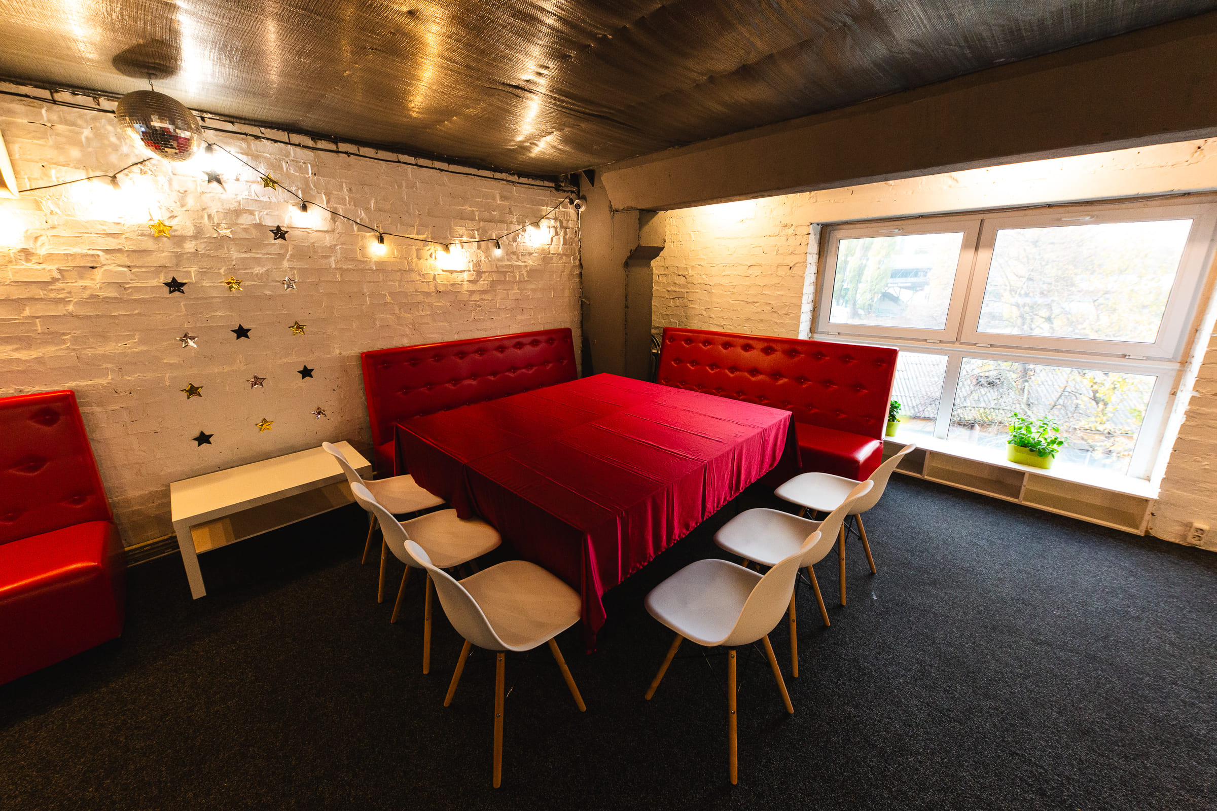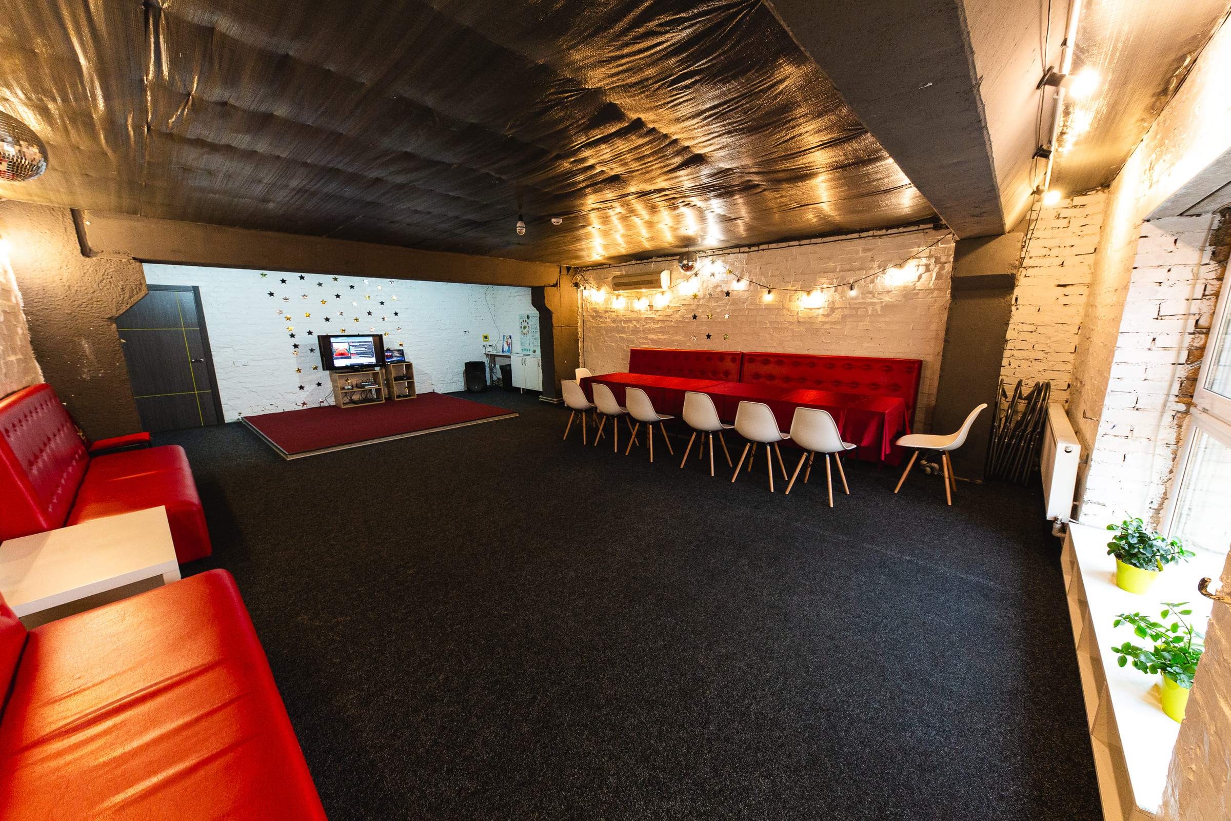 Стильний зал для приватних вечірок, днів народження, disco party, камерних виступів і майстер-класів, та будь-яких інших Ваших заходів.