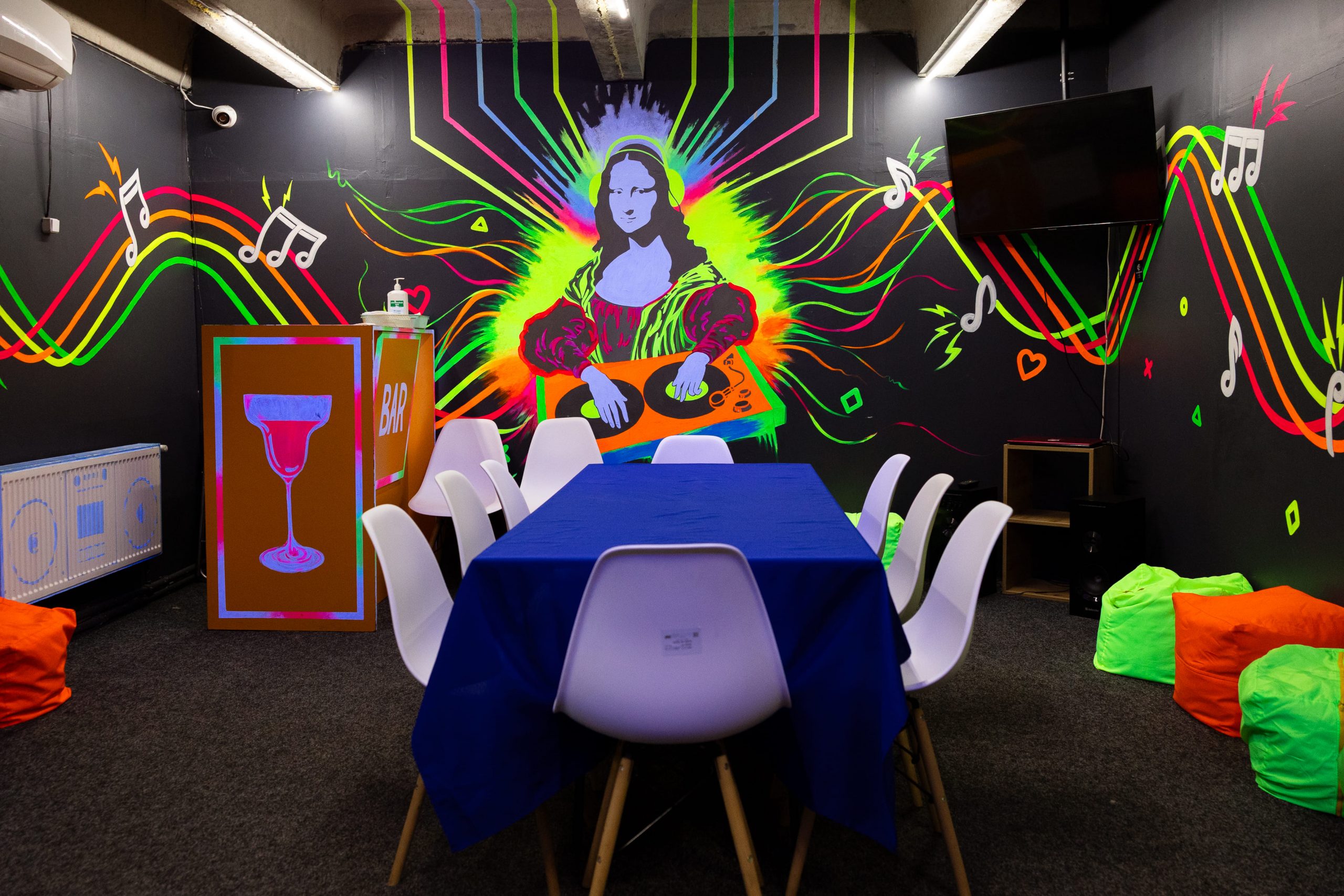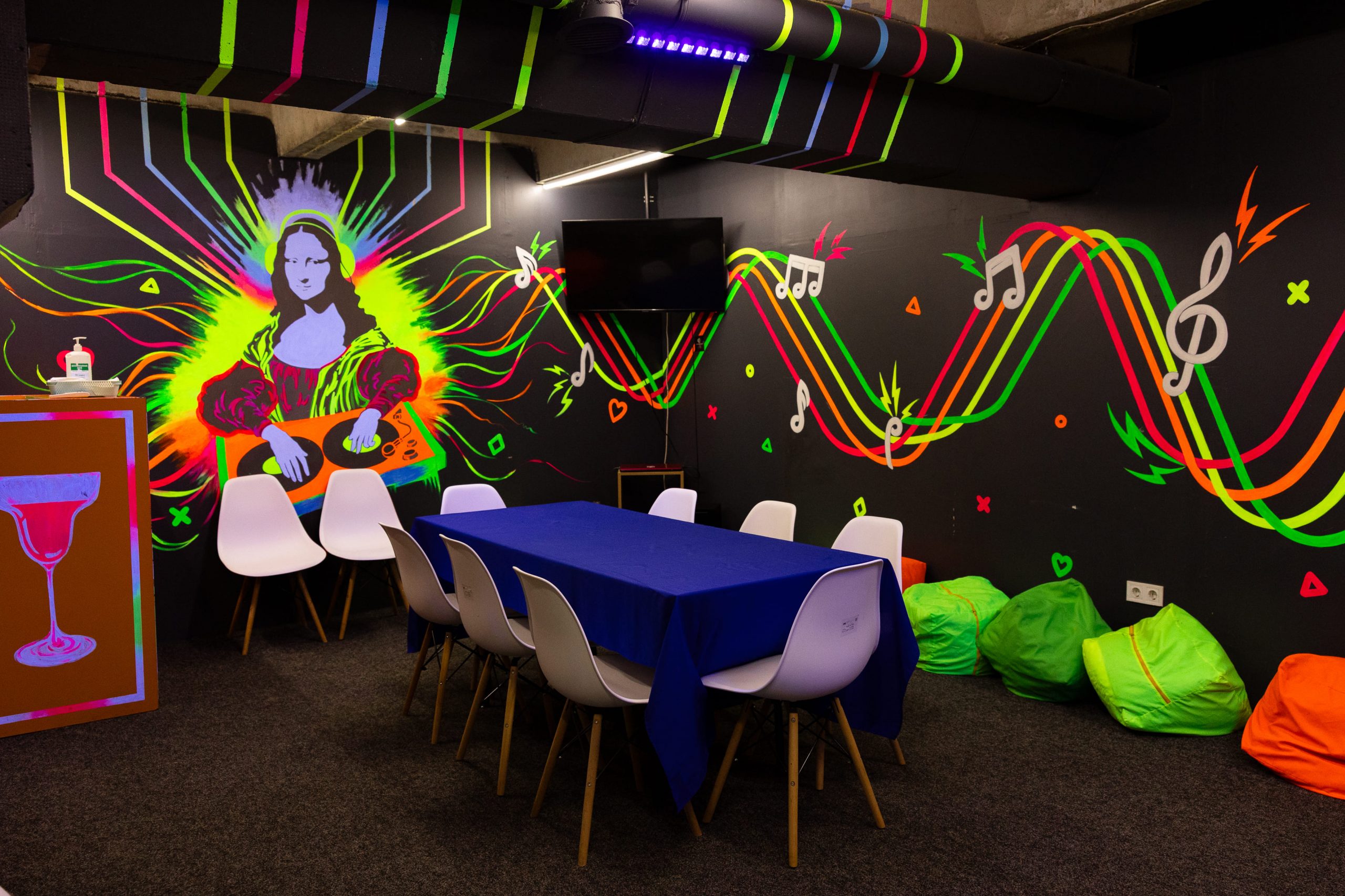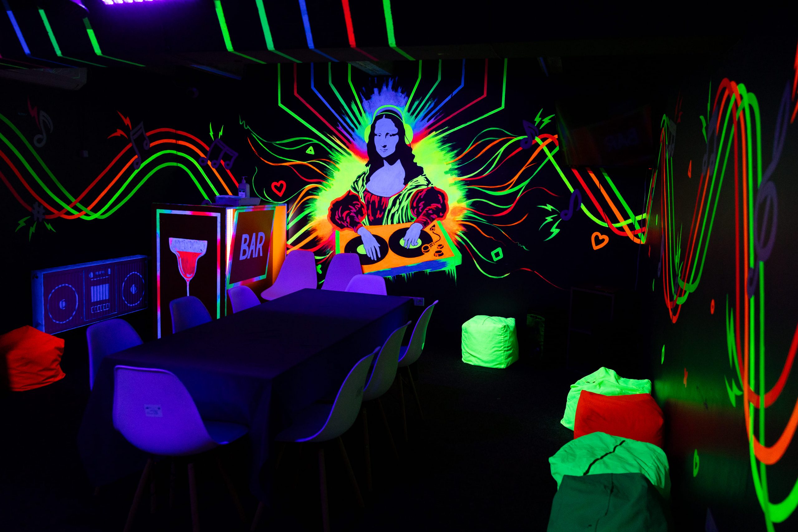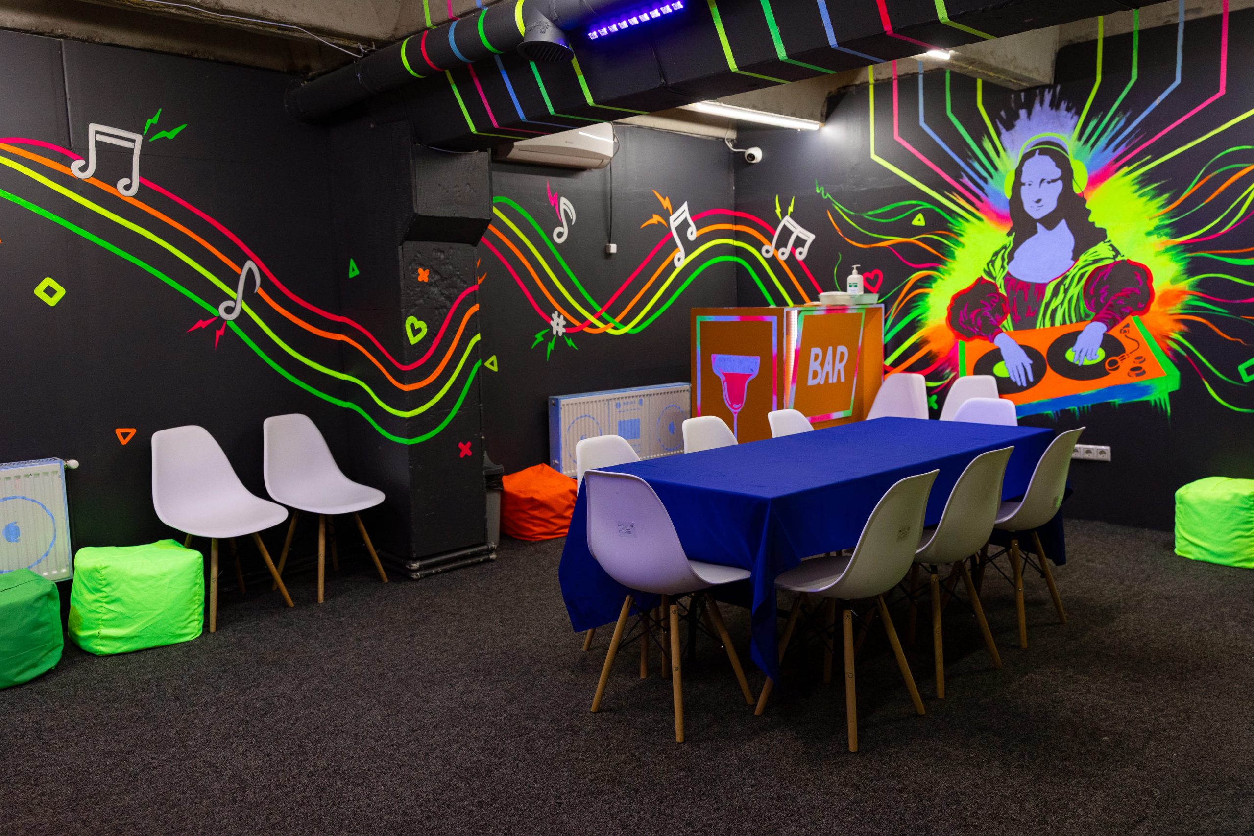 Яскравий неоновий диско зал для проведення заходів та диско програм для невеликої компанії друзів.