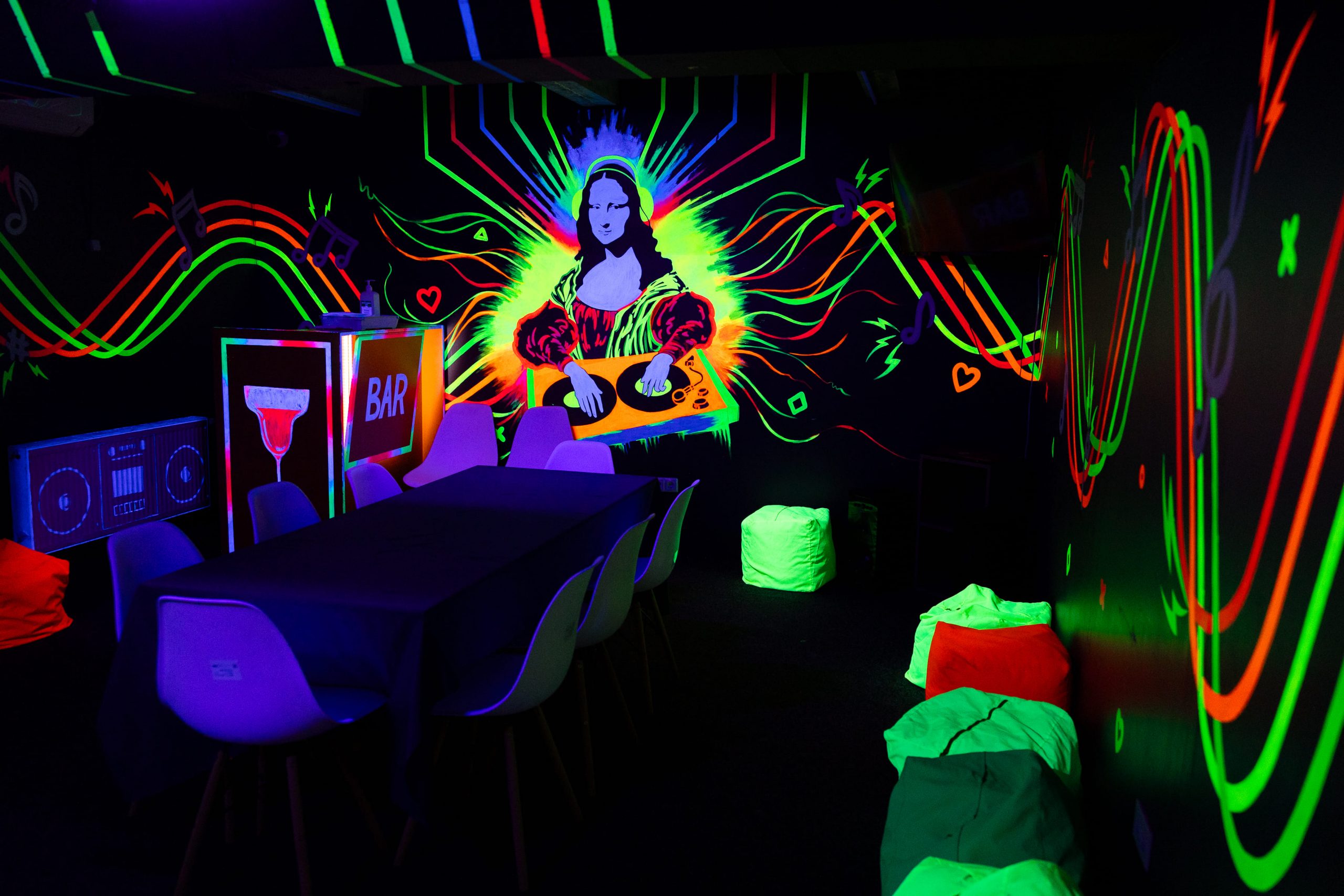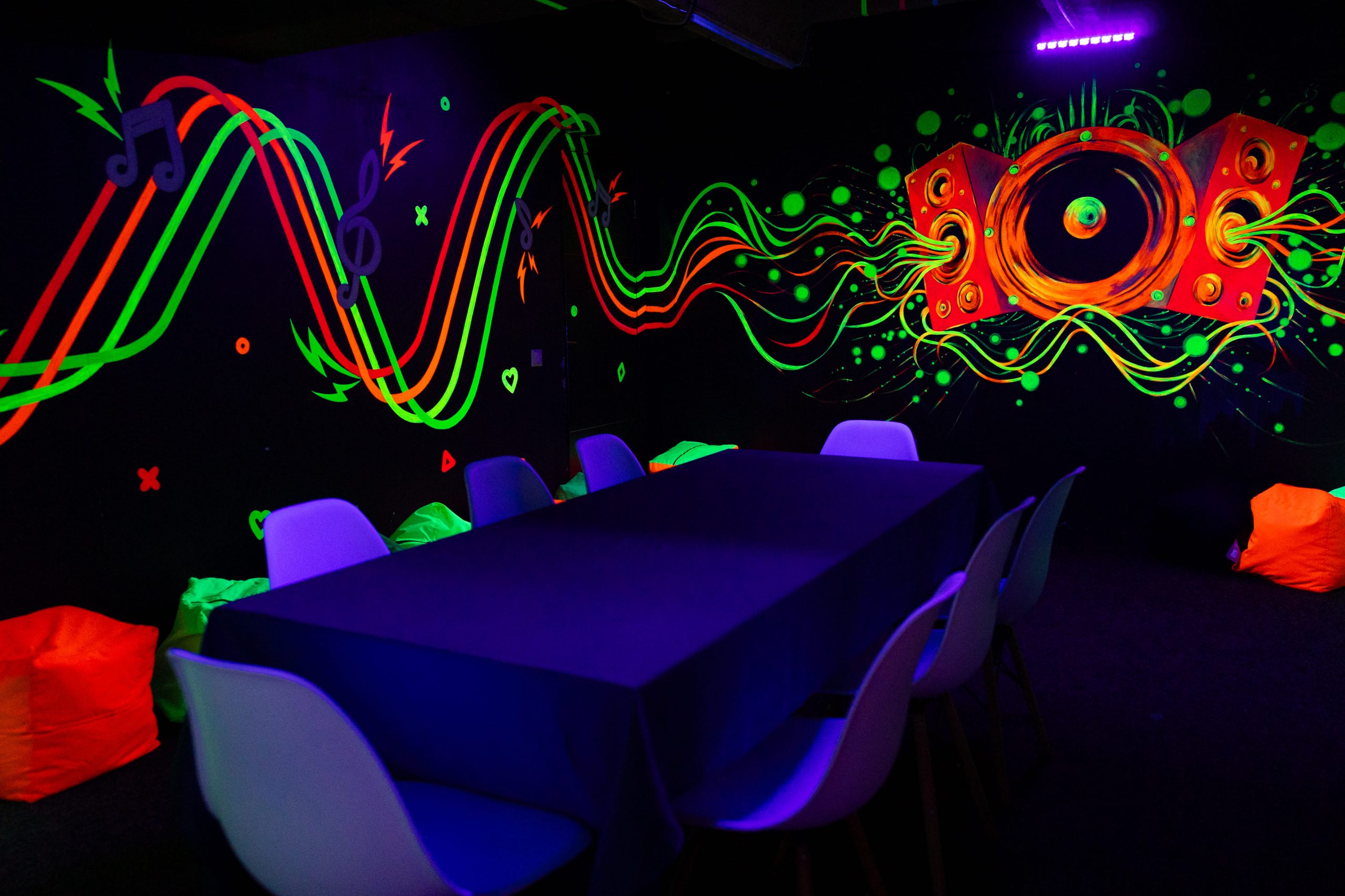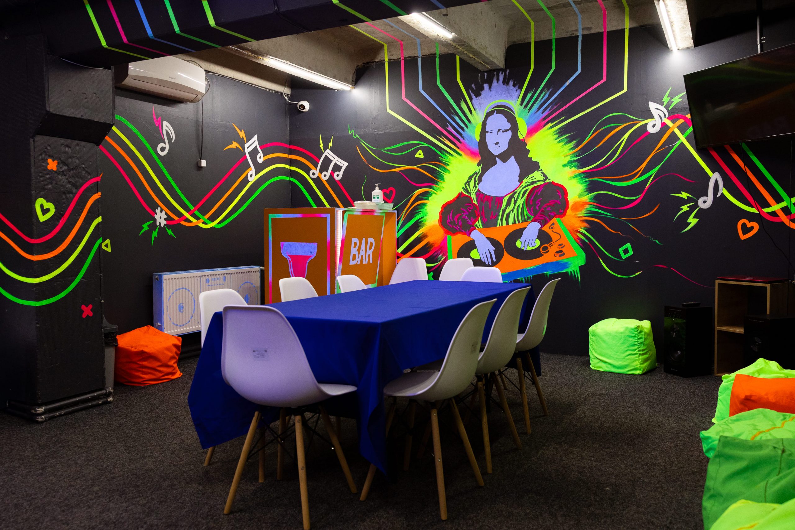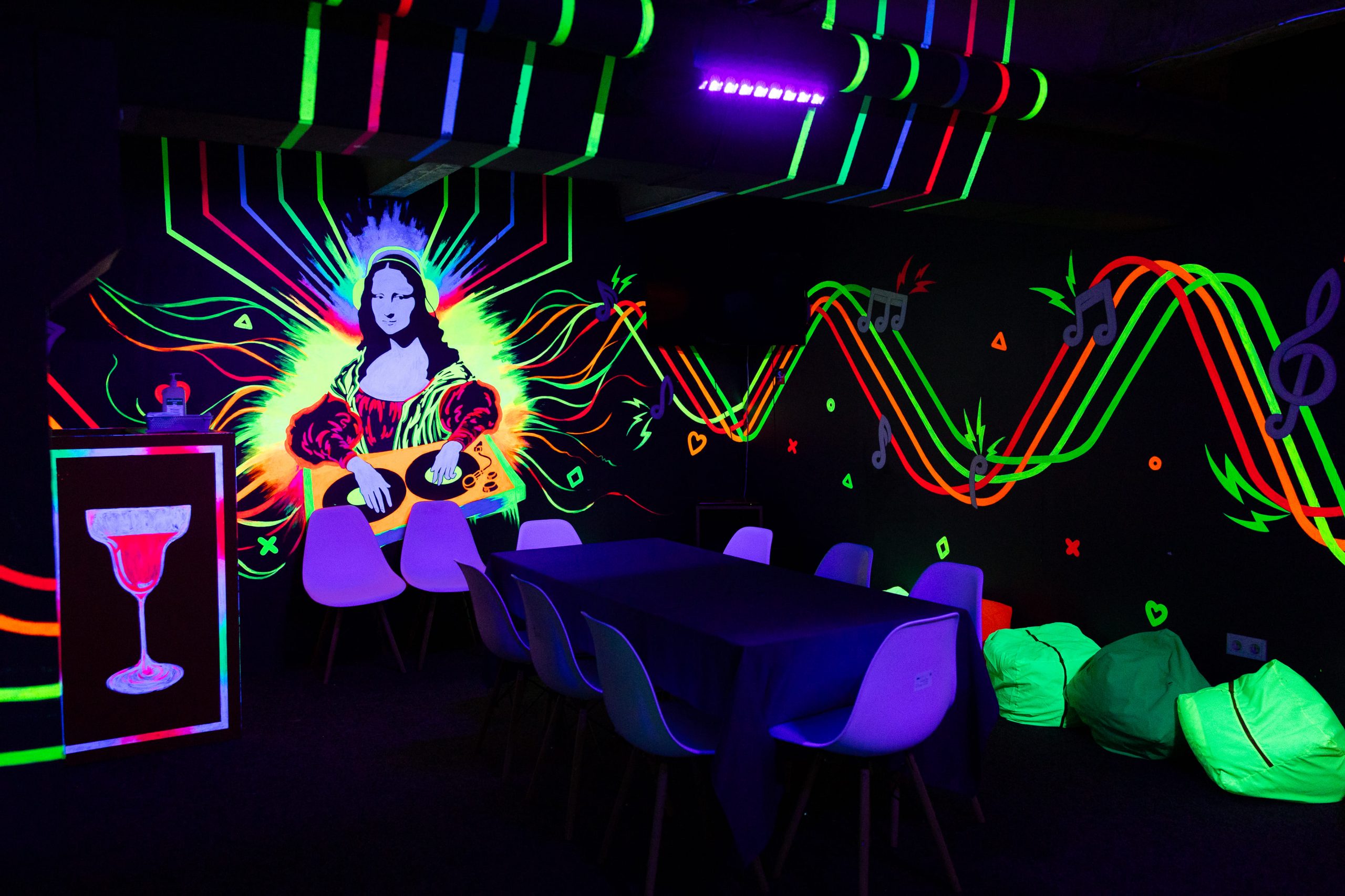Яскравий неоновий диско зал для проведення заходів та диско програм для невеликої компанії друзів.