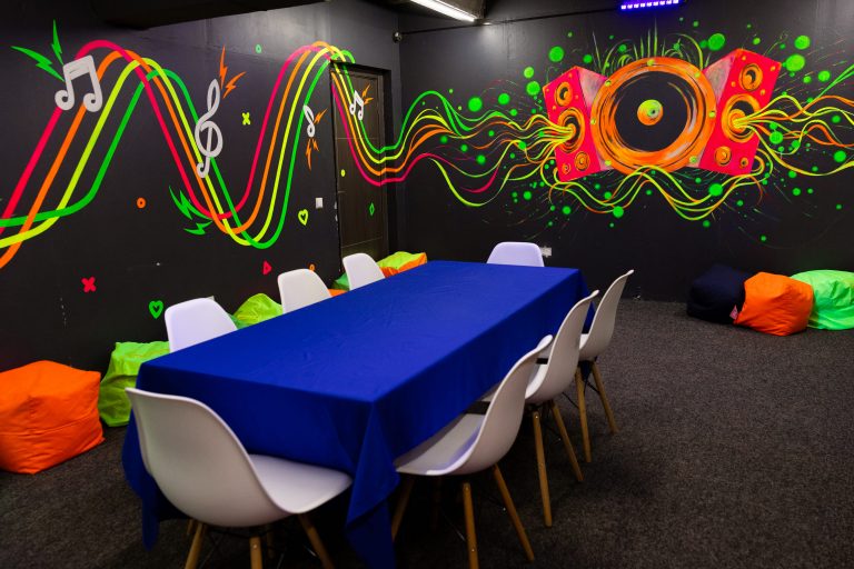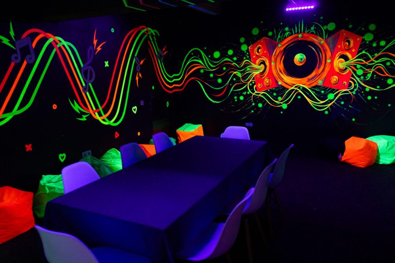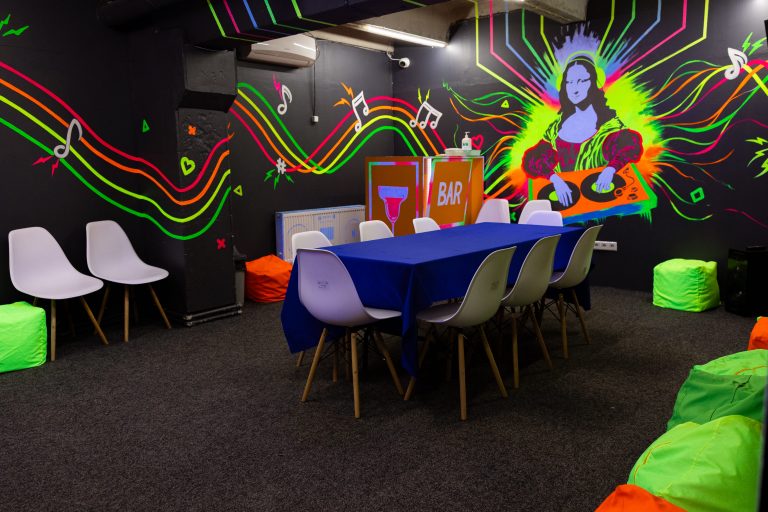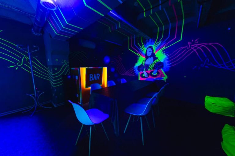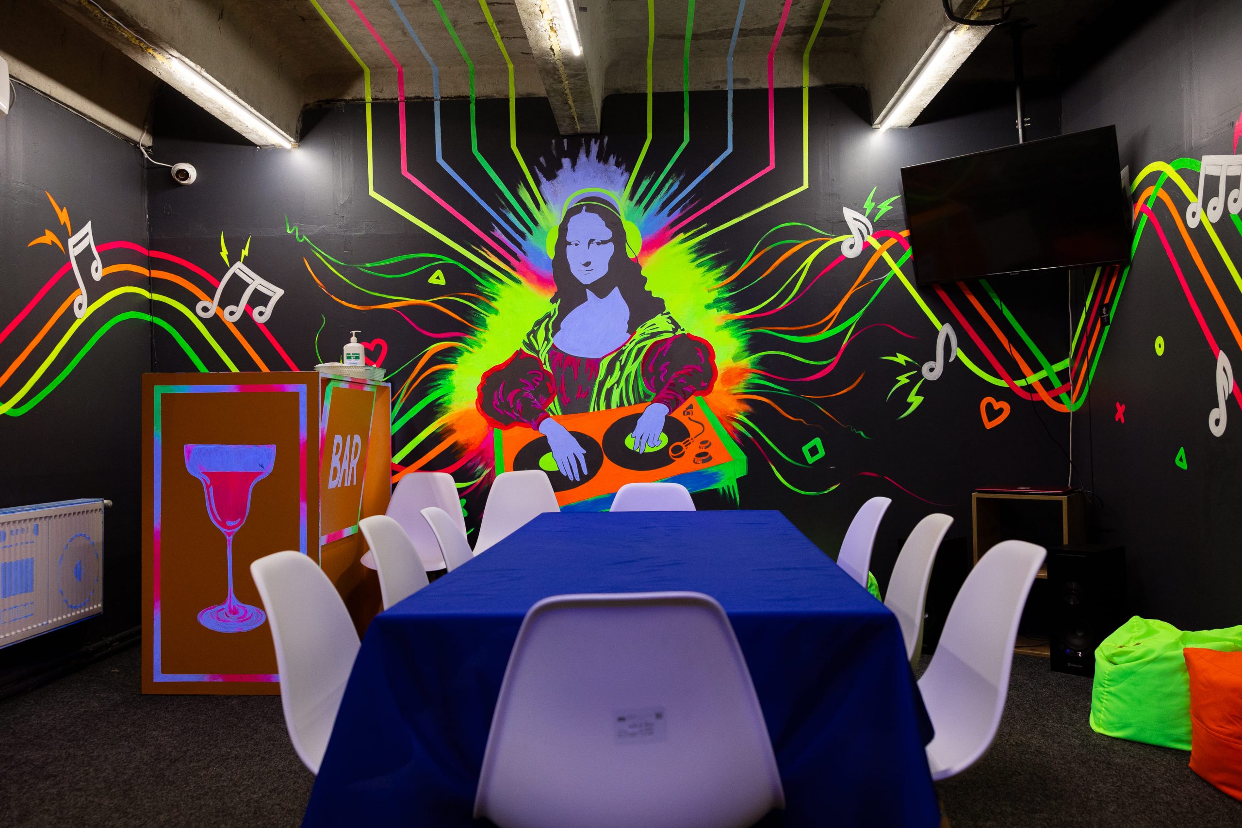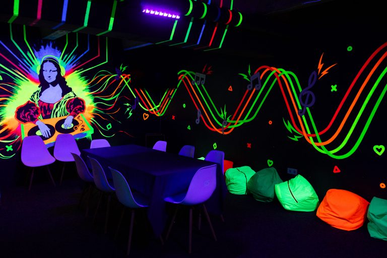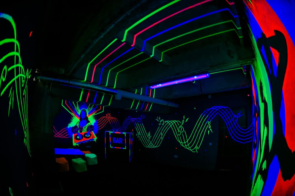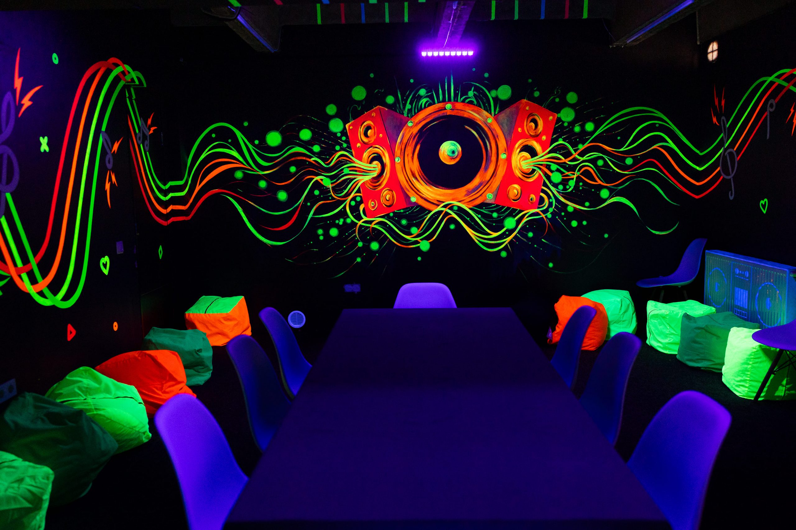 Яскравий неоновий диско зал для проведення заходів та диско програм для невеликої компанії друзів.